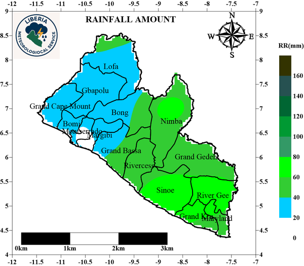 Rainfall: In MARCH 2026, the forecasted cumulative rainfall amount across the counties is anticipated to be between 95.1mm and 241.3mm. Sinoe, River Gee, Grand Kru and parts Maryland, Nimba, Bong and Lofa are expected to record the highest rainfall amount. The western region including Grand Cape Mount, Bomi, Montserrado, Margibi and parts of Grand Bassa and Gbarpolu are expected to receive less rainfall during this period. The rest of the country are expected to experience moderate rainfall during this period.