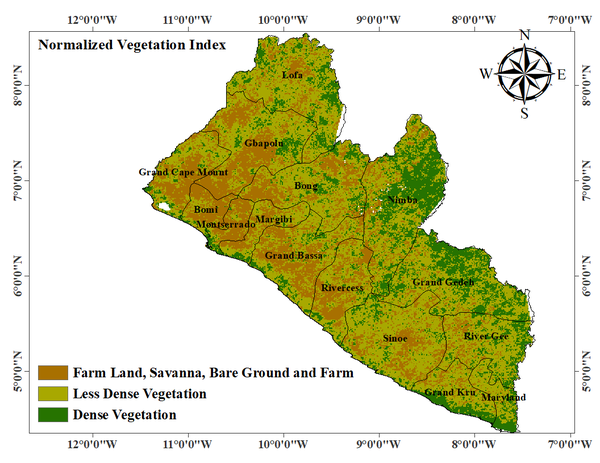 (NDVI): During the second, Grand Cape Mount, Gbapolu, Bomi, Montserrado and the western part of Bong County experienced decrease in vegetation while other parts of the country remained moderately green.