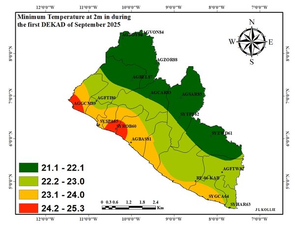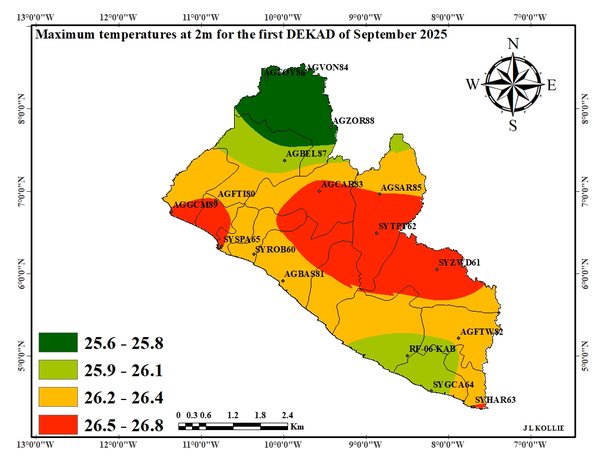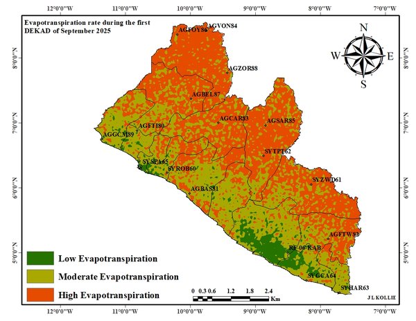 - Parts of Maryland, Grand Kru, and River Gee recorded the lowest rainfall, which may be linked to shifts in the movement of the ITCZ over the country.