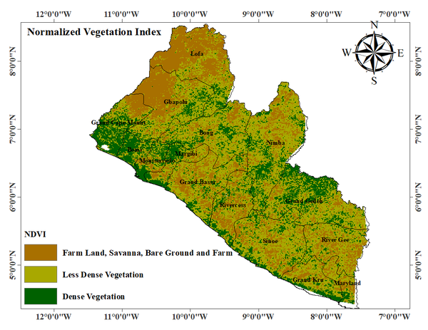NDVI: During the third, Lofa, Gbapolu, River Gee and Maryland experienced decrease in vegetation while other parts of the country remained moderately green.