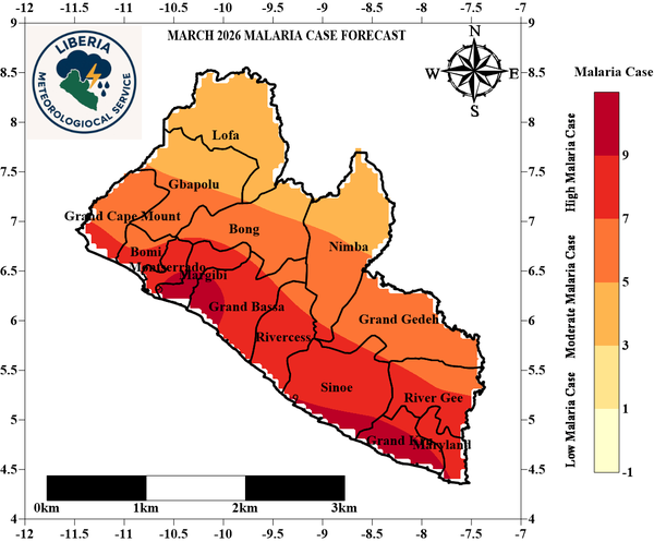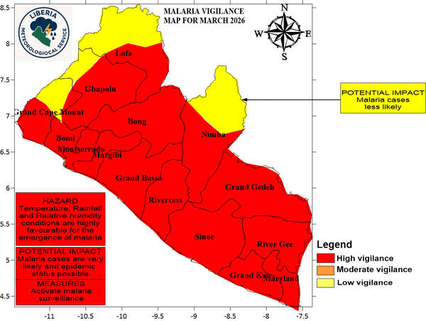 Overall, the forecasted climatic conditions for March 2026 indicate a high likelihood of malaria incident’s across the country. Nevertheless, low vigilance cases are expected to occur in parts of Nimba, Lofa Gbapolu and Grand Cape Mount counties.